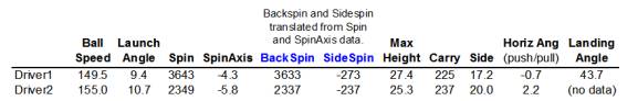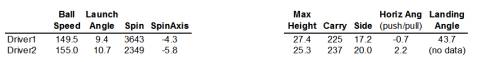 for Driver 1 and 20.6 yard difference for Driver 2).