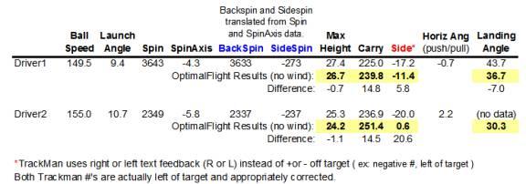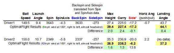 OptimalFlight ball flight analysis of questionable distance numbers from a