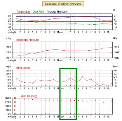 12-3pm time period, the wind direction is coming from the NW direction and